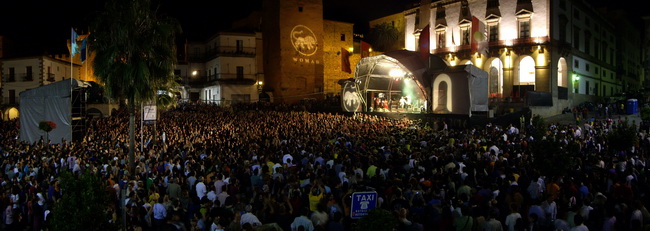 Anyone looking for relaxation in Caceres is at the wrong place in May, because at this time of the year the WOMAD festivals are celebrated and streets are overcrowded with drummers from West Africa, dancers from South America, with people playing music on the pavement and with large groups of young people from all over Europe who have come to Caceres only for that event. The acronym WOMAD means “World Music and Dance”. Caceres is transformed into such a world each year at the beginning of May, and in 2009 for the twentieth time. During the WOMAD days, stages are set up at the Plaza Mayor, the Plaza San Jose and at the Gran teatro. Musicians and dancers from all over the world perform there from the afternoon until late at night. Salif Keita from Mali, who is now one of the most important African musicians, has been a guest at the festival many times. The Israeli singer Mor Karbasi has already performed in Caceres, as well as the band Paprika Balcanicus who brought the traditional music of the Balkans and Eastern Europe to the main European festivals. The WOMAD event aims to unite as many styles of music and dance as possible, and this is not only because the organisers want to offer unusual concerts and to arouse curiosity about unknown sounds and rhythms. The WOMAD and its nearly 20,000 guests want to celebrate together differences and cultural richness. The WOMAD wants to show that differences must not divide, but rather can bring people together - and are enjoyable too.